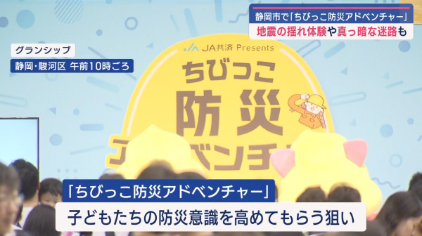 地元テレビ局の静岡朝日テレビが主催する「ちびっこ防災アドベンチャー」に特別協賛しています。このイベントでは、「防災ヒーロー」チャレンジを通じて子供たちが防災知識を楽しく学ぶことができます。ブースでは「地震ザブトン」で地震体験ができたり、うんこ先生による防災ショーがあったり、また、キッチンカーの出店もあり、終日楽しめるイベントです。